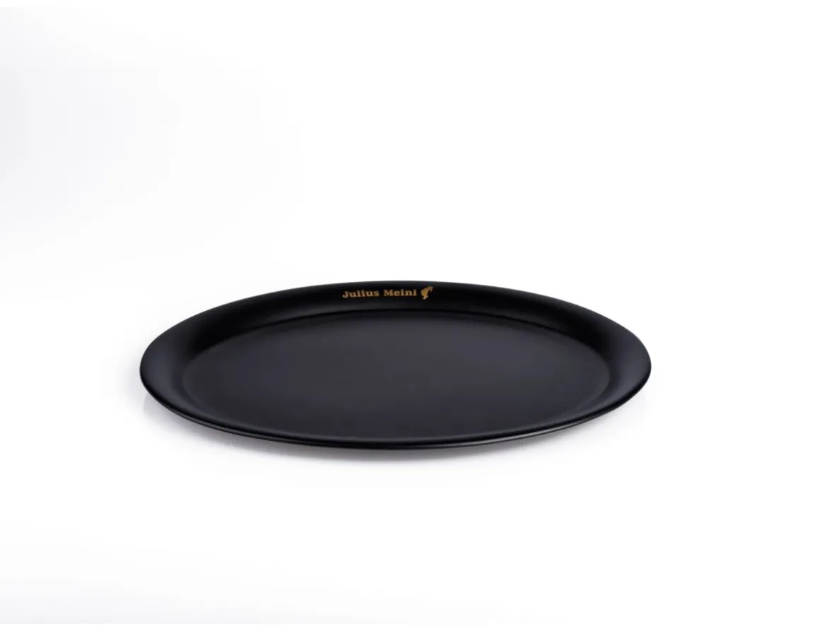 Das Julius Meinl Silber Tablett hat an beiden länglichen Seitenrändern das Logo graviert.