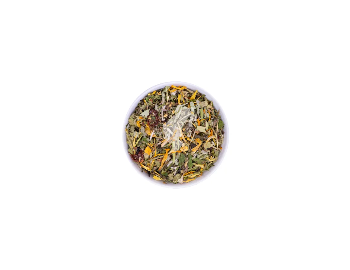 Zutaten: Bio-Zitronenmelisse (20 %), Bio-Süßfenchel, Bio-Hagebutte, Bio-Salbei, Bio-Pfefferminze (8 %), Bio-Gerstengras, Bio-Anis-Ysop, Bio-Frauenmantelkraut, Bio-Thymian, Bio-Ringelblumenblüten (3 %) , Bio-Thymian, Bio-Ringelblumenblüten (3 %), Bio-Holunderblüten (2 %), Bio-Kapuzinerkresse.