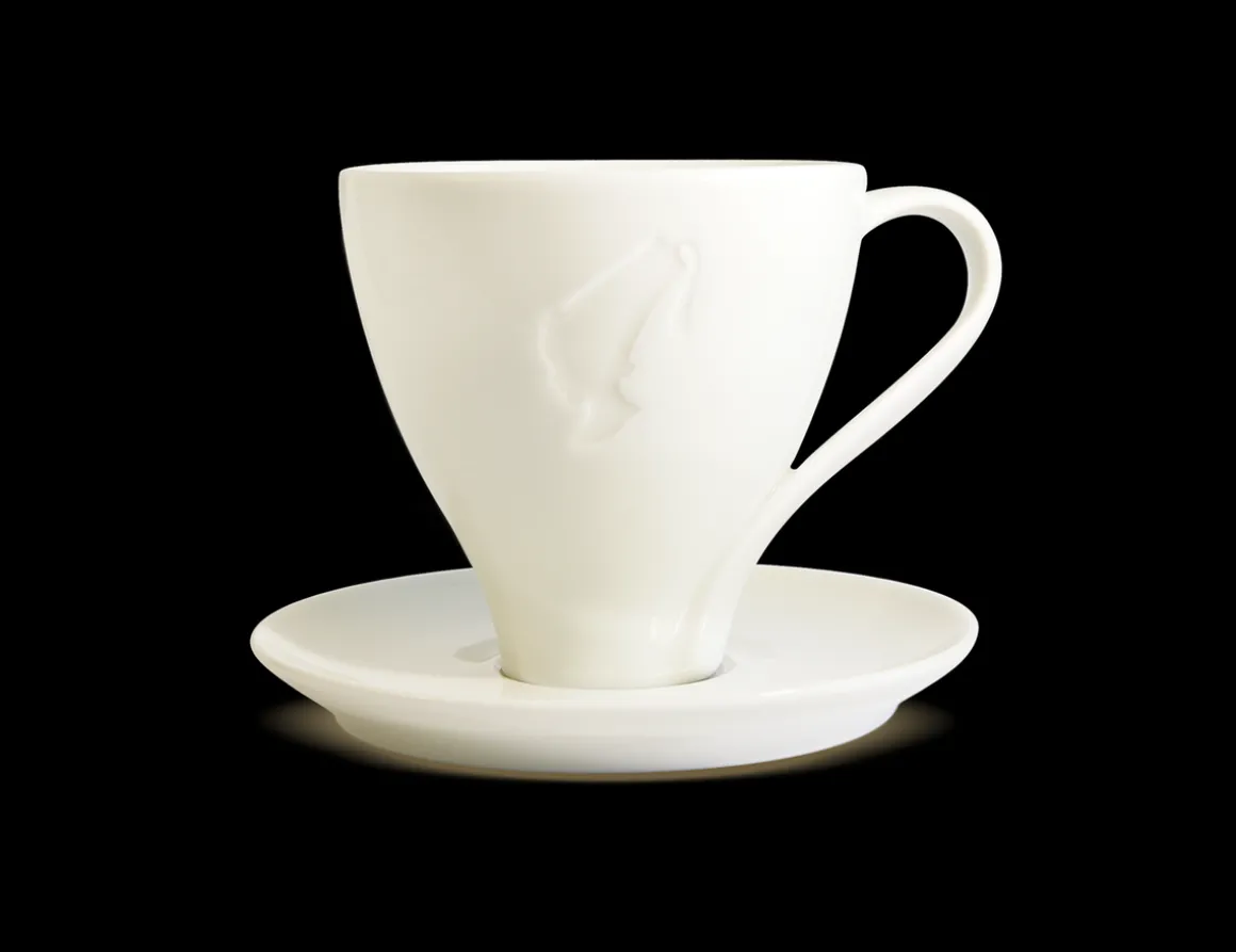 Die Julius Meinl Premium Serie ist in einem zarten elfenbeinfarbenen Weiß mit eleganter Prägung erhältlich.Diese Tassen werden in hochwertigen Arbeitsschritten, teilweise in Handarbeit, erzeugt. Ein Objekt höchster Qualität, in dem sich Kaffeearomen hervorragend entfalten können. Diese Tasse eignet sich perfekt für einen Kaffee mit Milch.Fassungsvermögen 250ml. Durchmesser Tasse: 9 cm.Durchmesser Untertasse: 14,5 cmHöhe Tasse: 8,5 cm